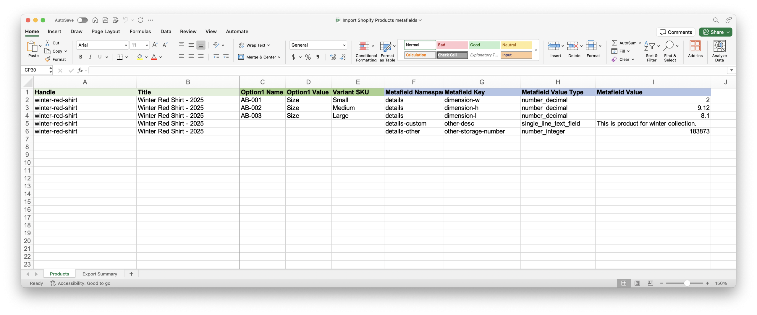 - The easiest way to learn Metafields is to export them and watch how they are in Excel (or in CSV). Then import them back, and see what changed. You can do those experiments with just one row.