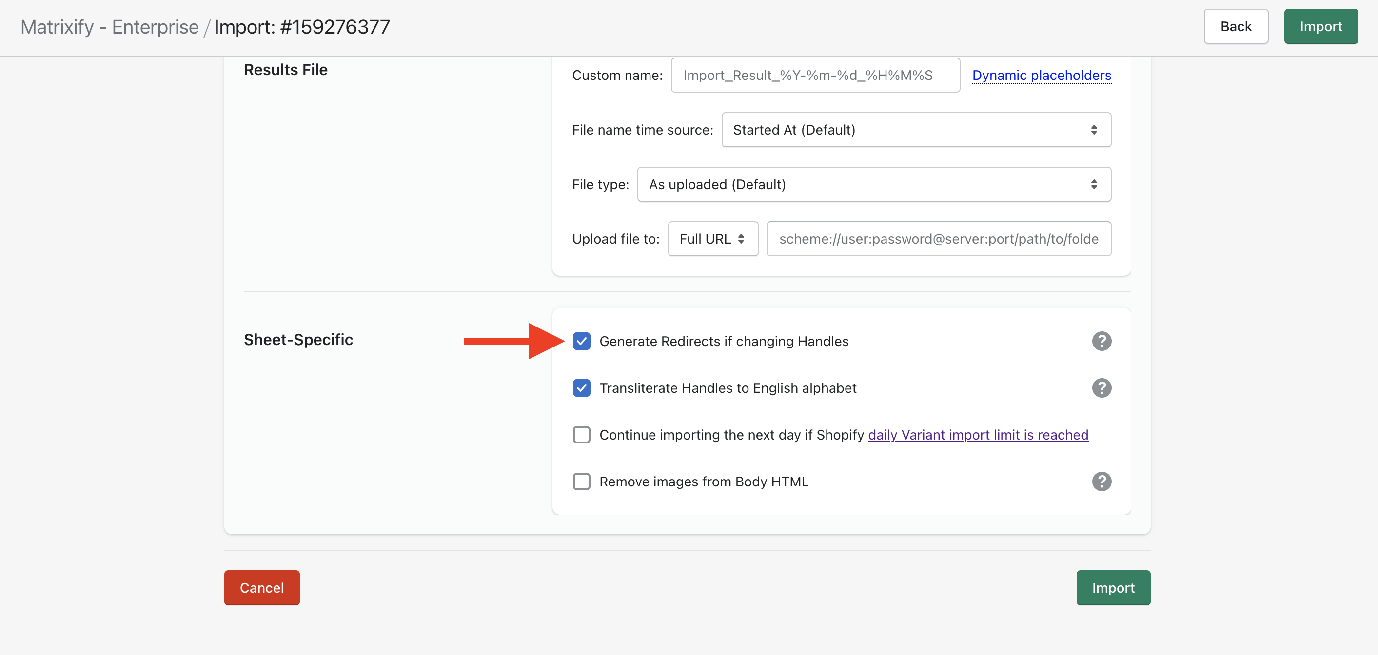 If import speed is very critical for you, and you are sure you don’t need any Redirects generated, you can switch if off in the Options, before pressing the Import button.