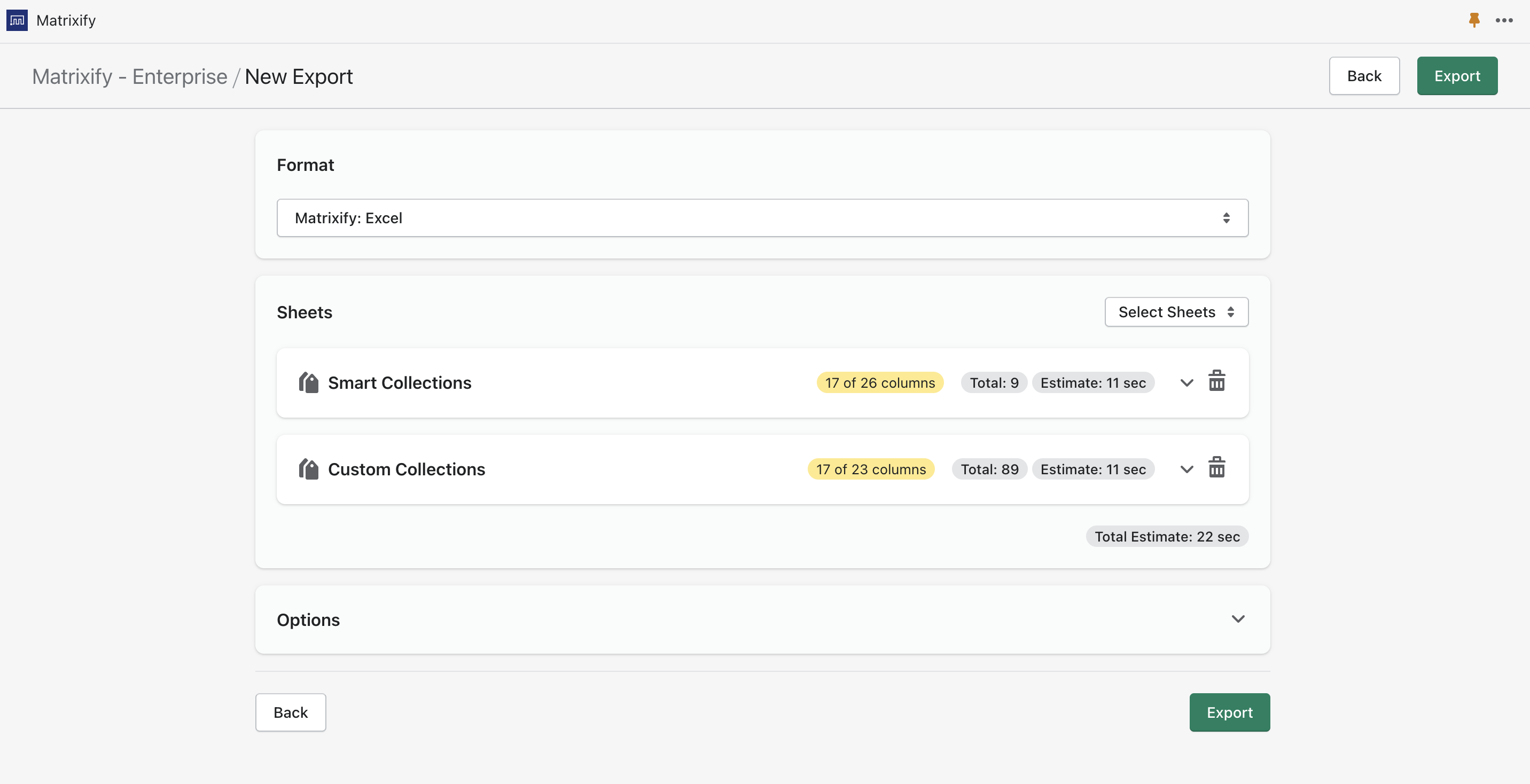 For each collection you only need to select “Basic Columns” to be Exported.