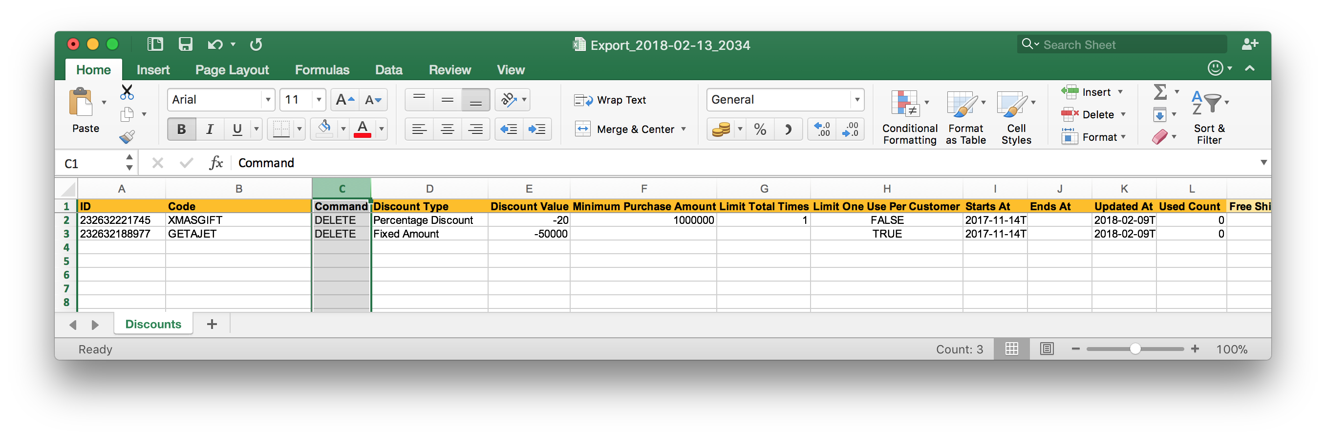 1. Export your Discounts from Shopify to Excel