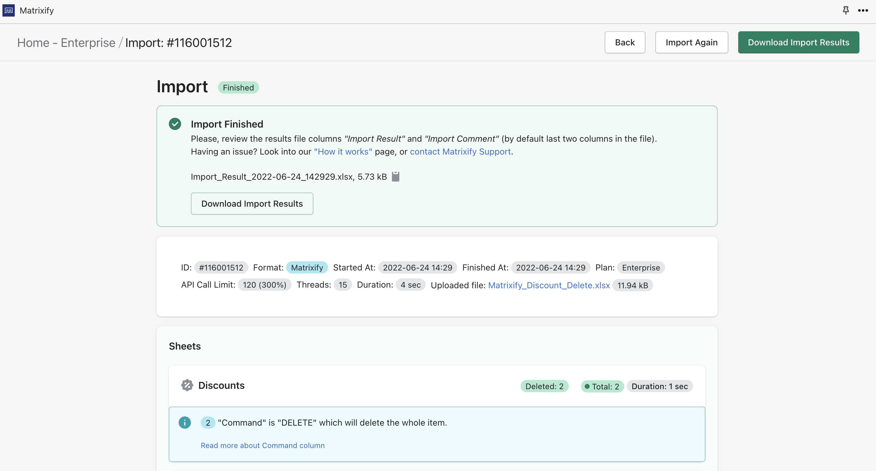 Then Import your file into the Matrixify app.