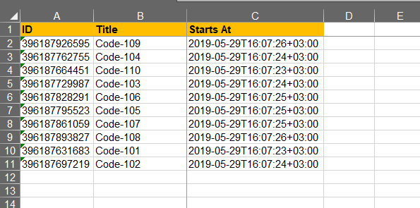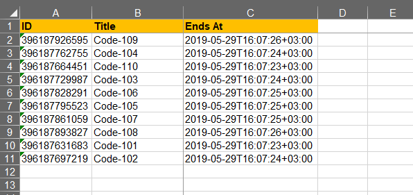 Now the file with these 3 columns is exactly what we need to mark the Discounts as expired and disable them.