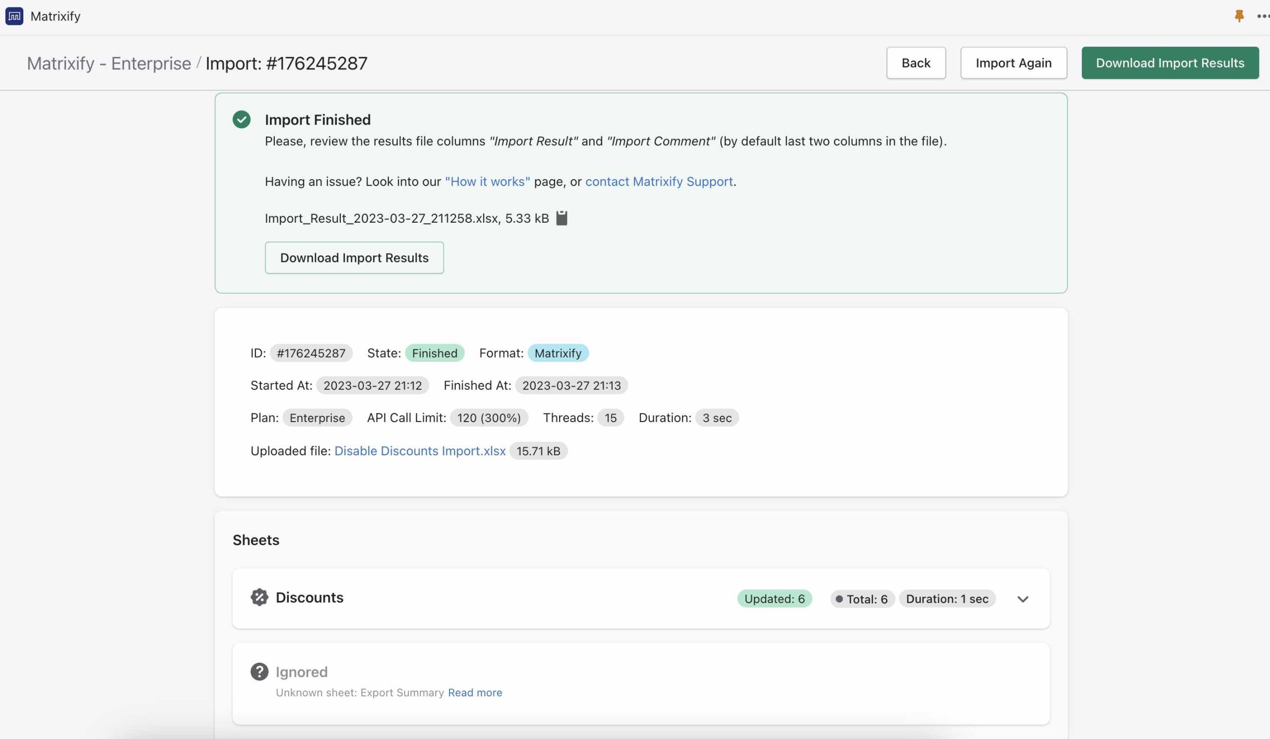 - Contact Matrixify support if you run into any issues or have additional questions.