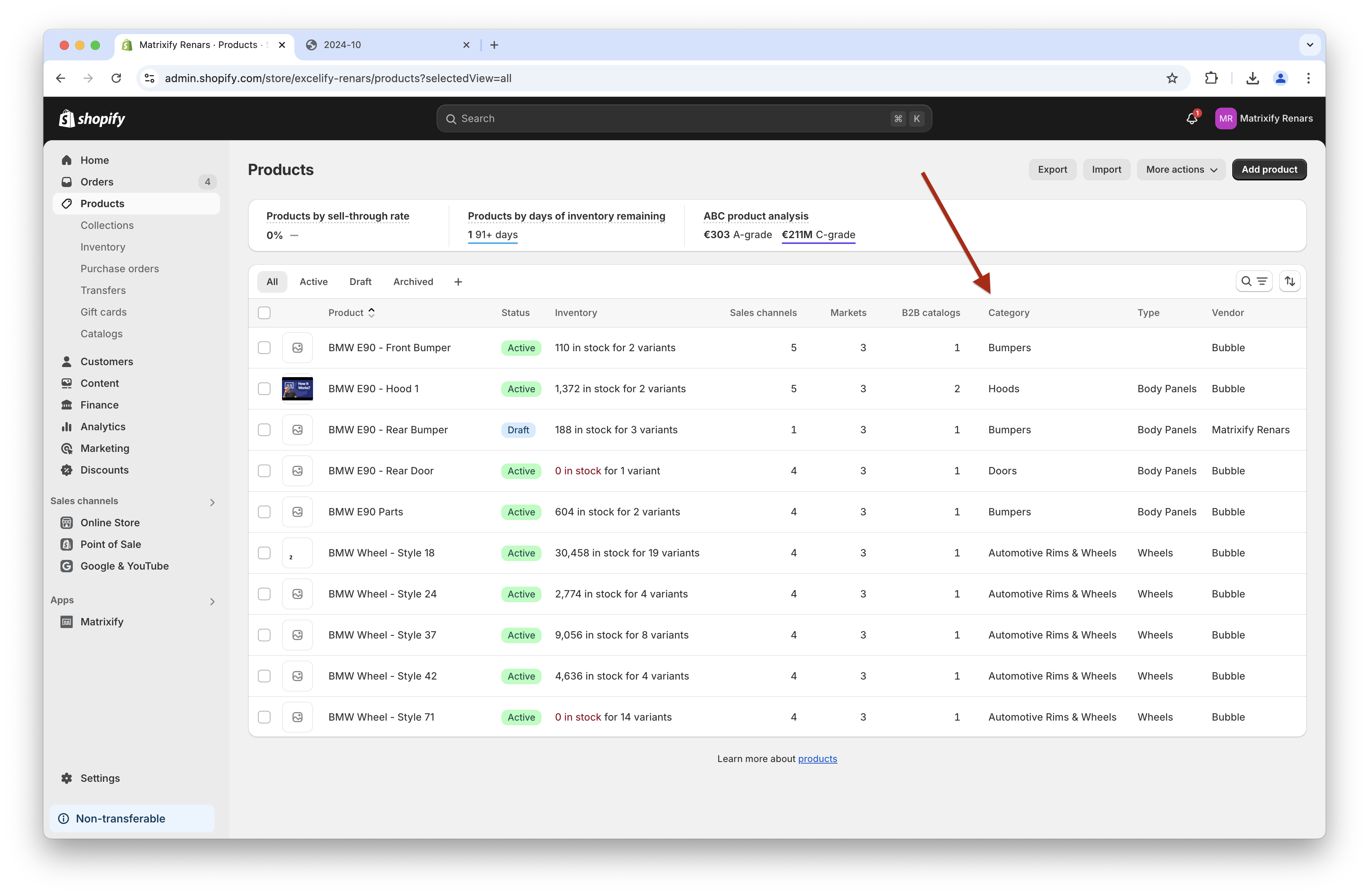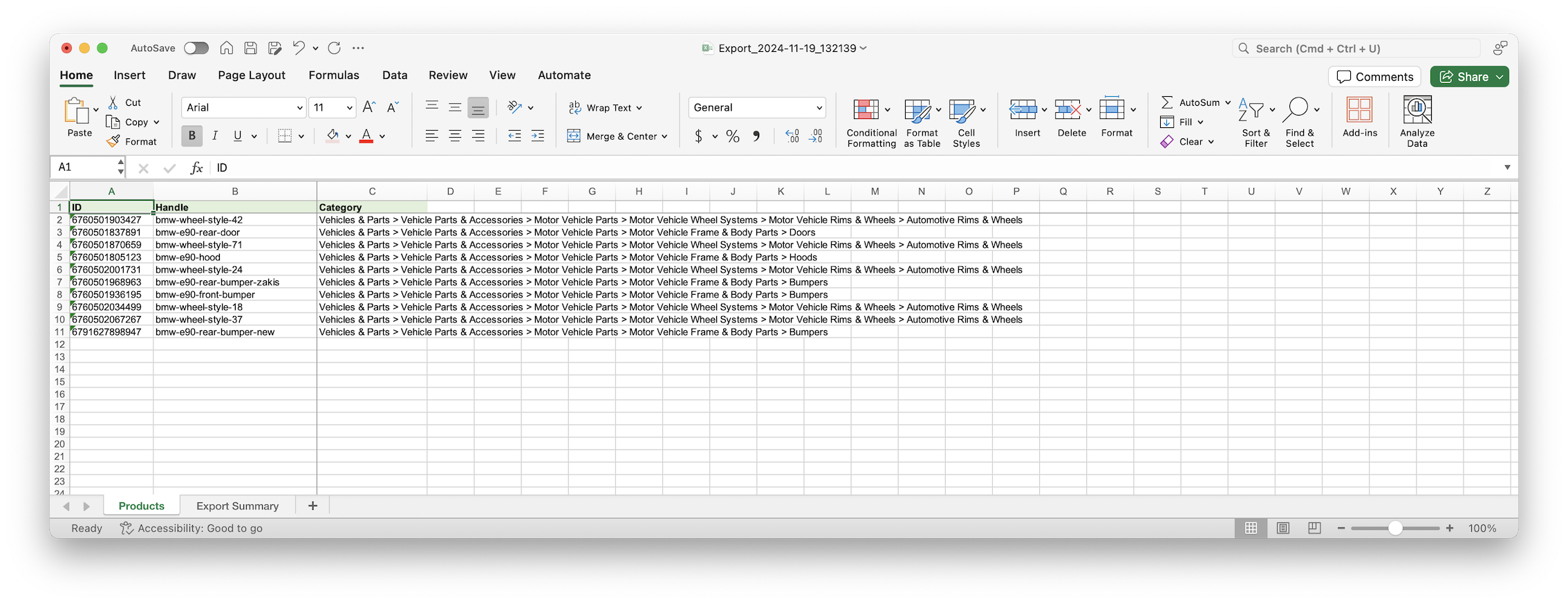 Typecolumn. - If you wish to double-check that all Products have the Category set in Shopify, you can do another export as in step #1.