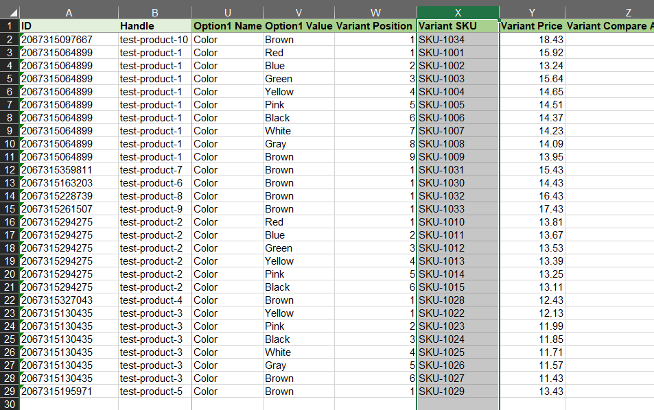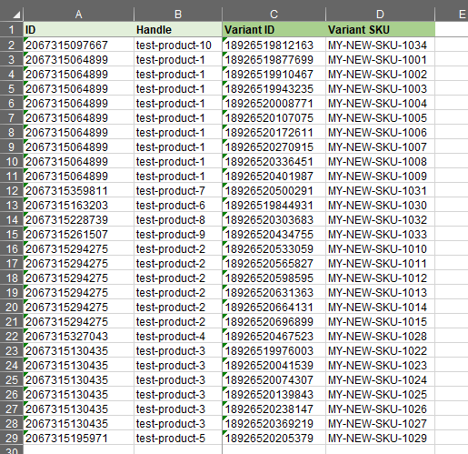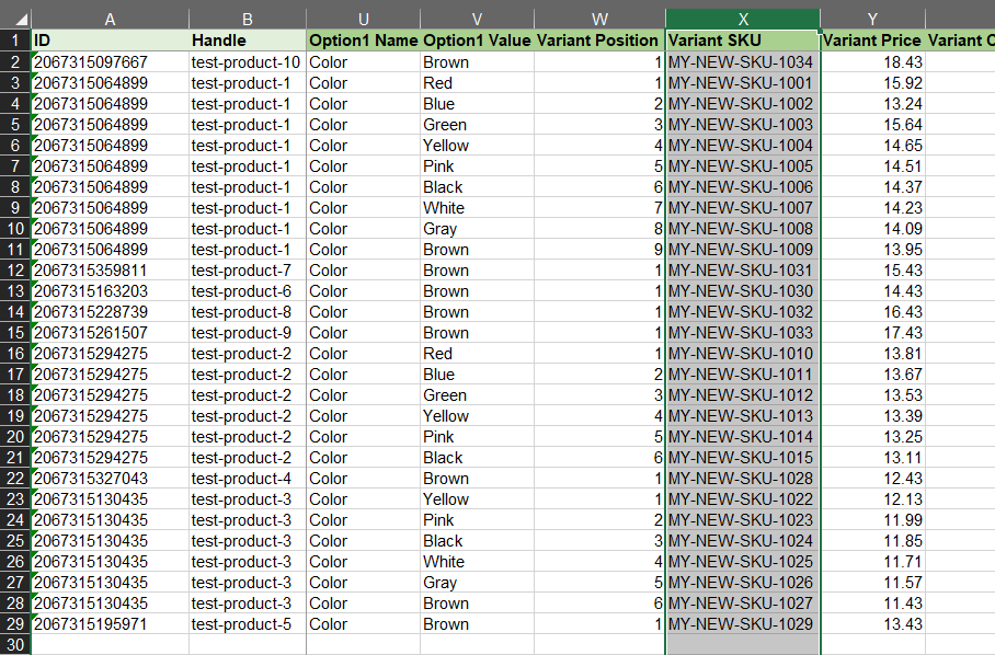 Now is the time where you can locate column “Variant SKU” and update your Product SKUs