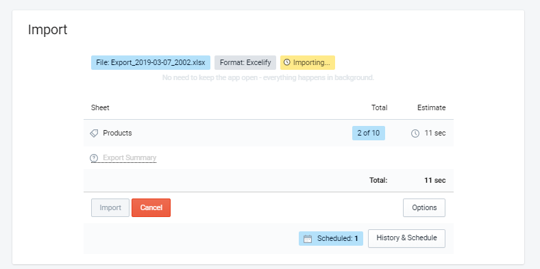 Now you can save the file. Go back to the Matrixify app and import the file in the Import section. The app will analyze the file and count how many Products you are importing.