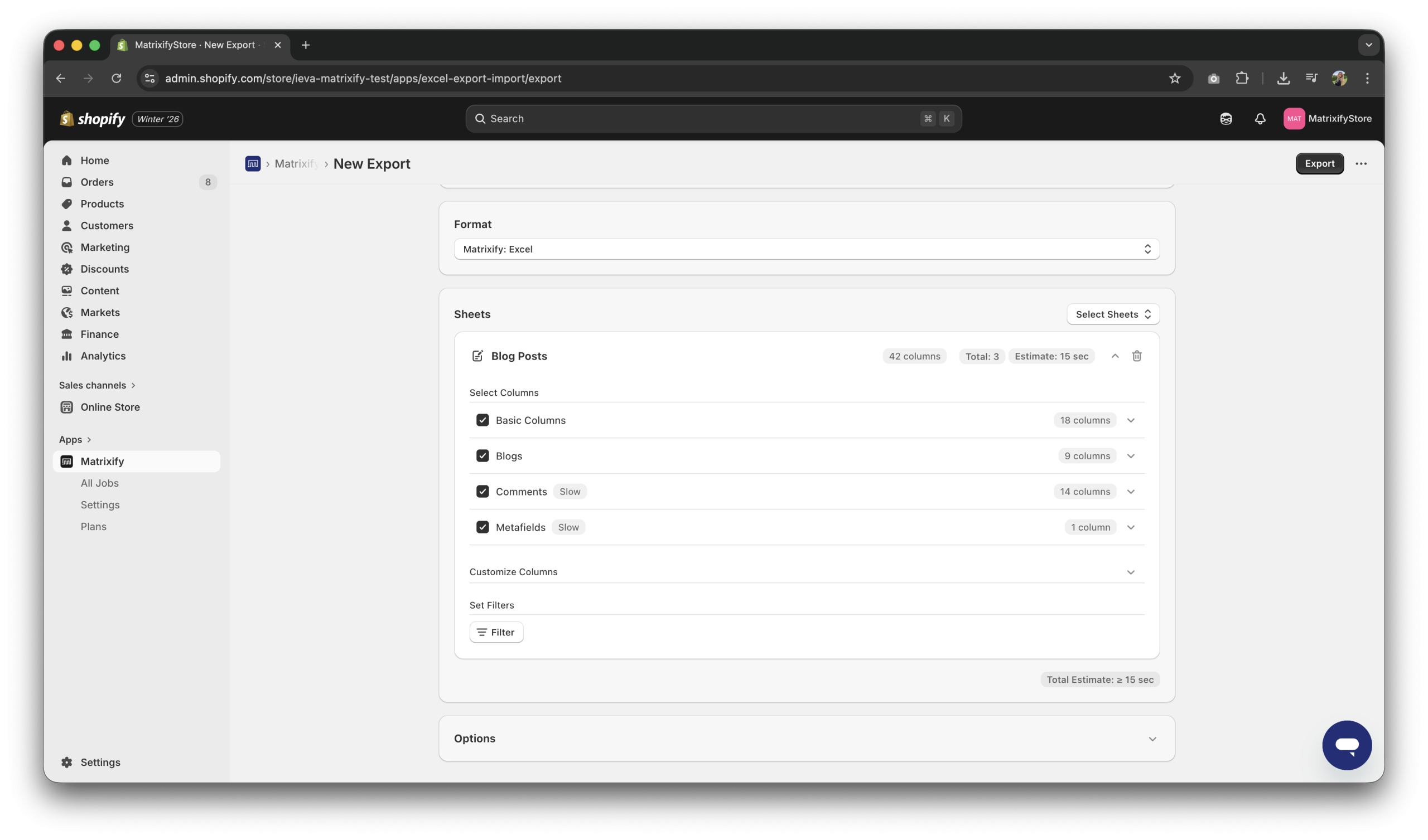 Migrating to a new Shopify store or setting up a test/development store often means you want your existing content to come along too. In this tutorial, you’ll learn how to use the Matrixify app to clone your Shopify Blogs, Blog Posts (Articles), and their Comments from one Shopify store to another.