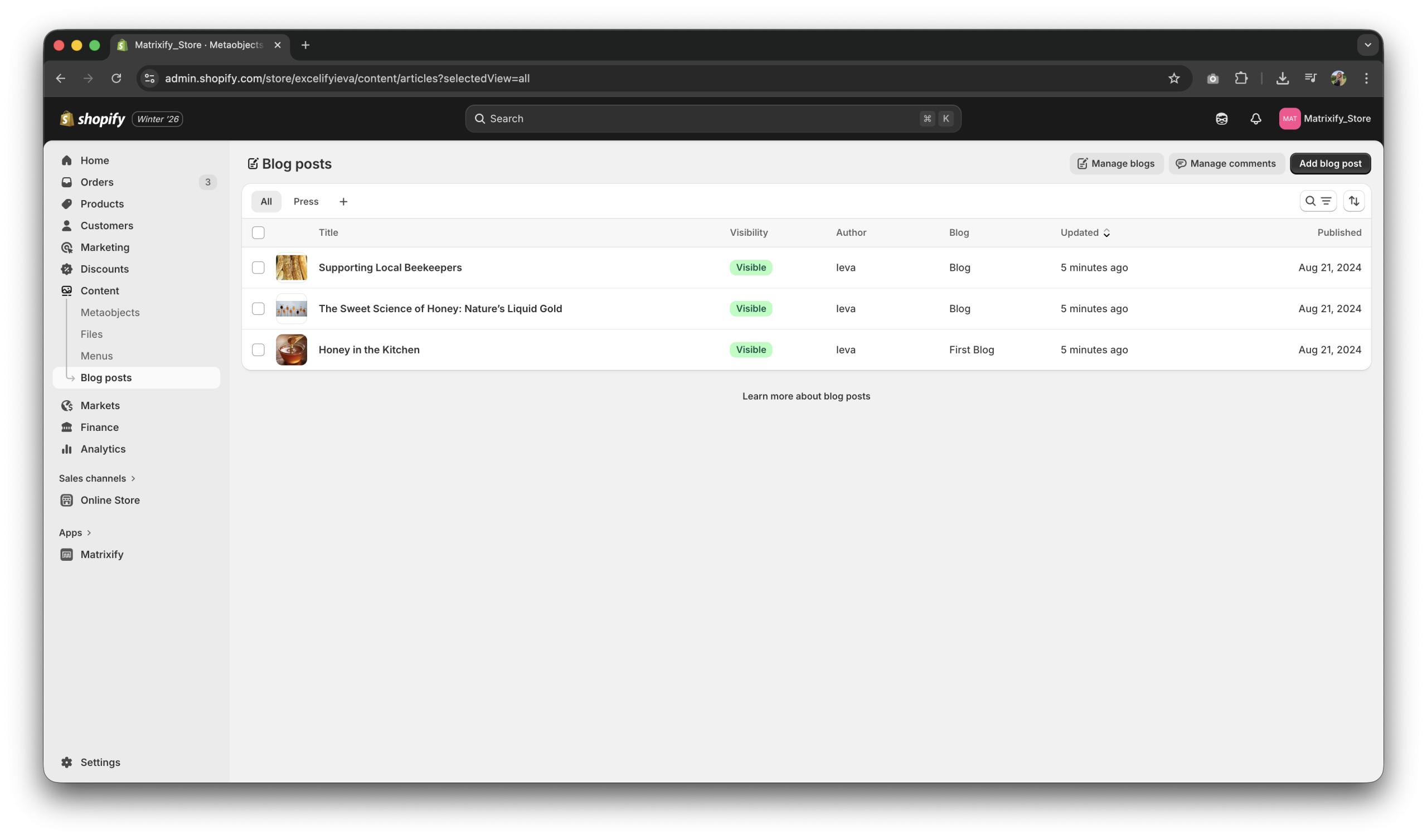 - You are not limited to just Blog Posts, you can also clone your whole store using the Matrixify app!