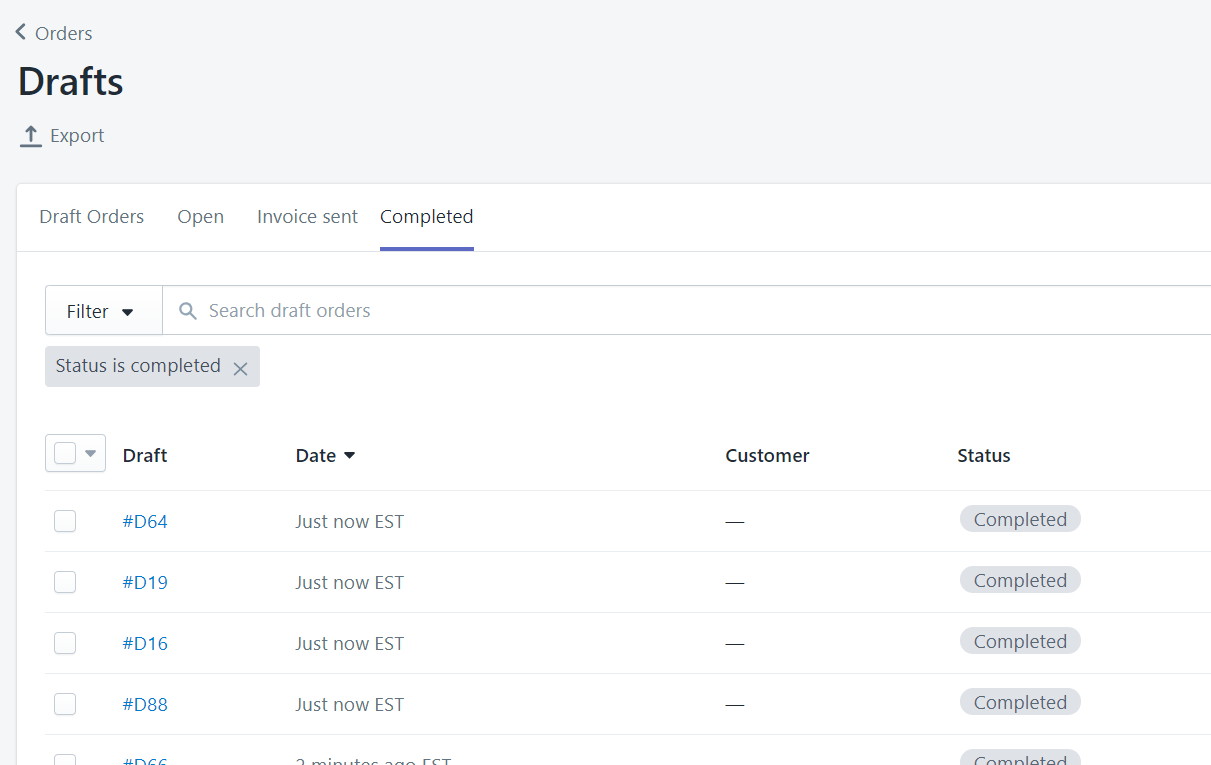 - Done! Check out your Draft Orders in your Shopify Admin.