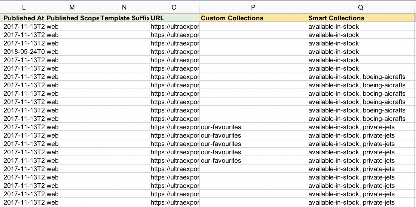 If the cell is empty, that means that this product is not in any of the respective collections.