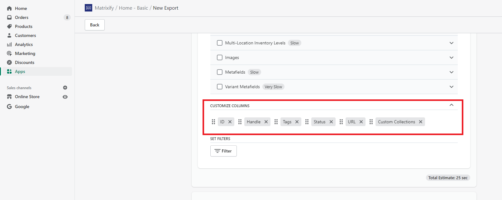 Now with the Matrixify app, you can customize your export to specify what columns to export and in what order!