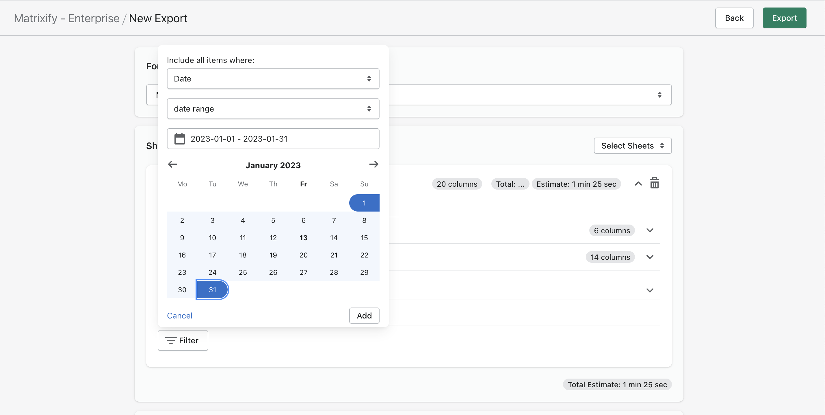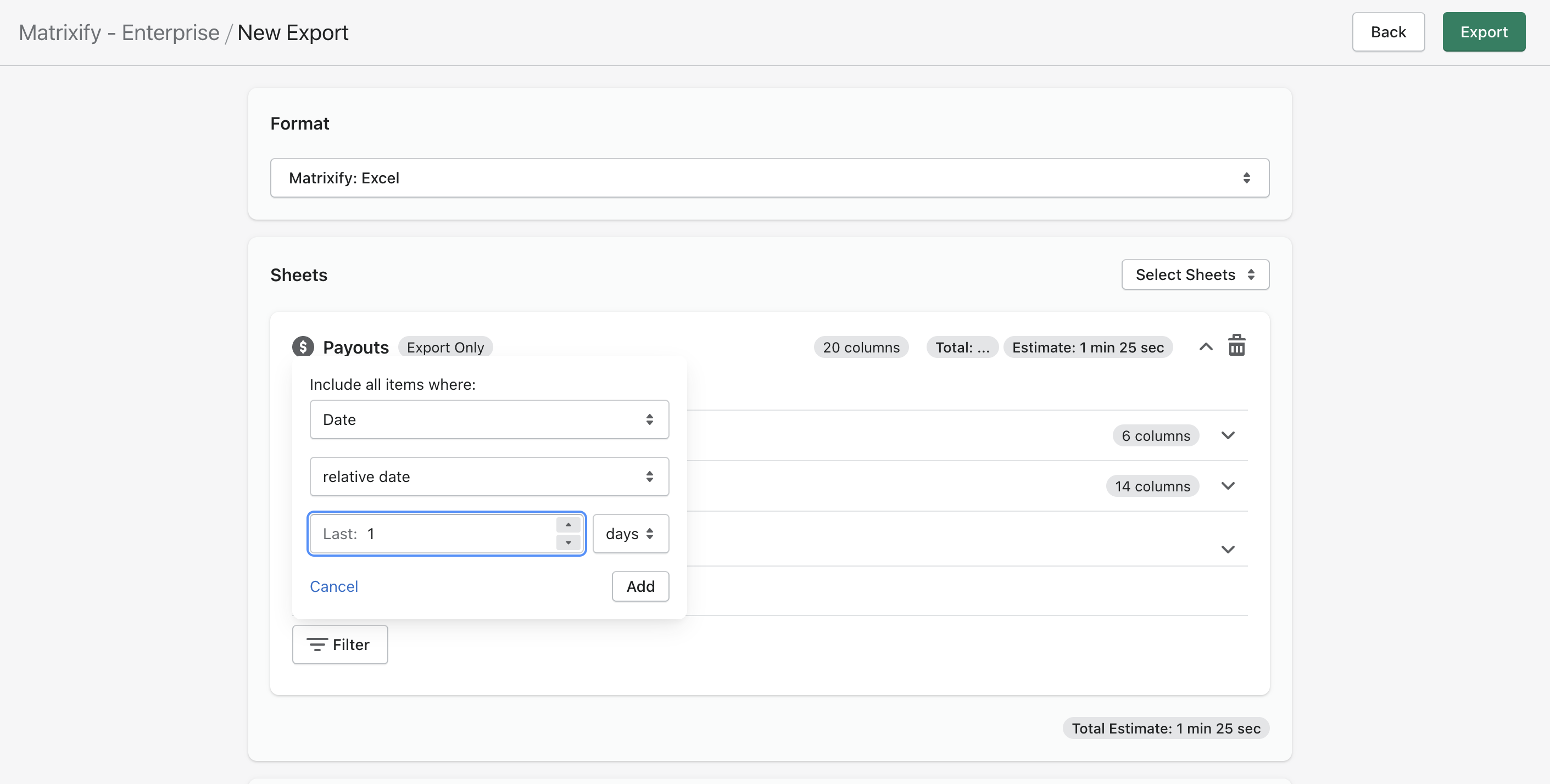 To see full list of currently available export filters, check out our full Export Filters documentation.