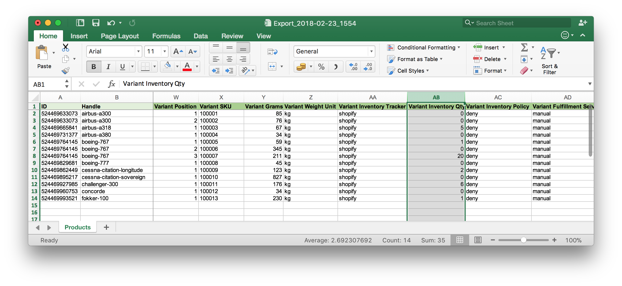 - Remember to put Published = TRUE, when you have these Products back in Stock. You can do that in a very similar manner, just find all products with Sum of Variants Inventory Qty > 0 and import their Handles with Published = TRUE.