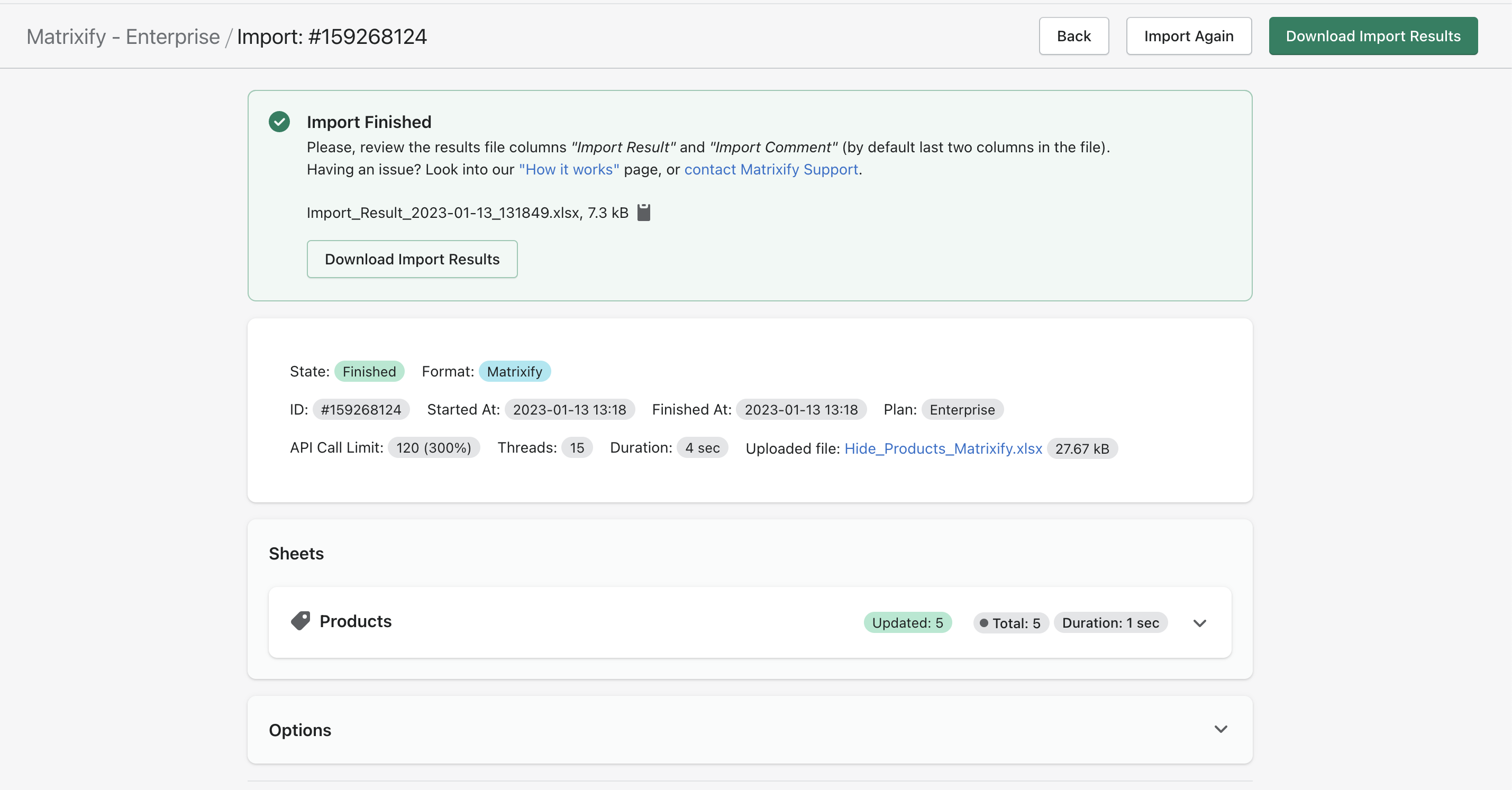 Now we have the Handles for all products that are out of stock and can import them into the Shopify Store with Published column value set to FALSE (this will unpublish your products from your sales channels).