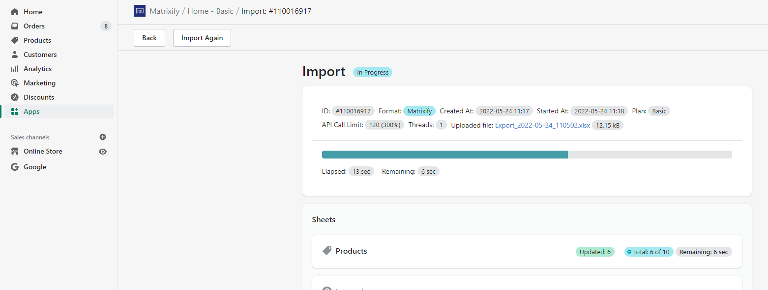 When you have finished editing the file save and head back into the Matrixify app.