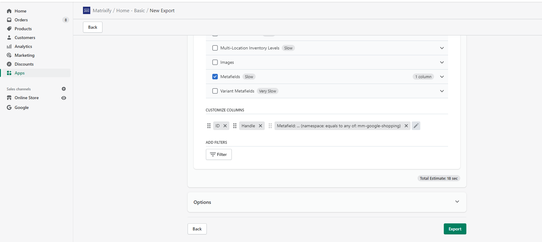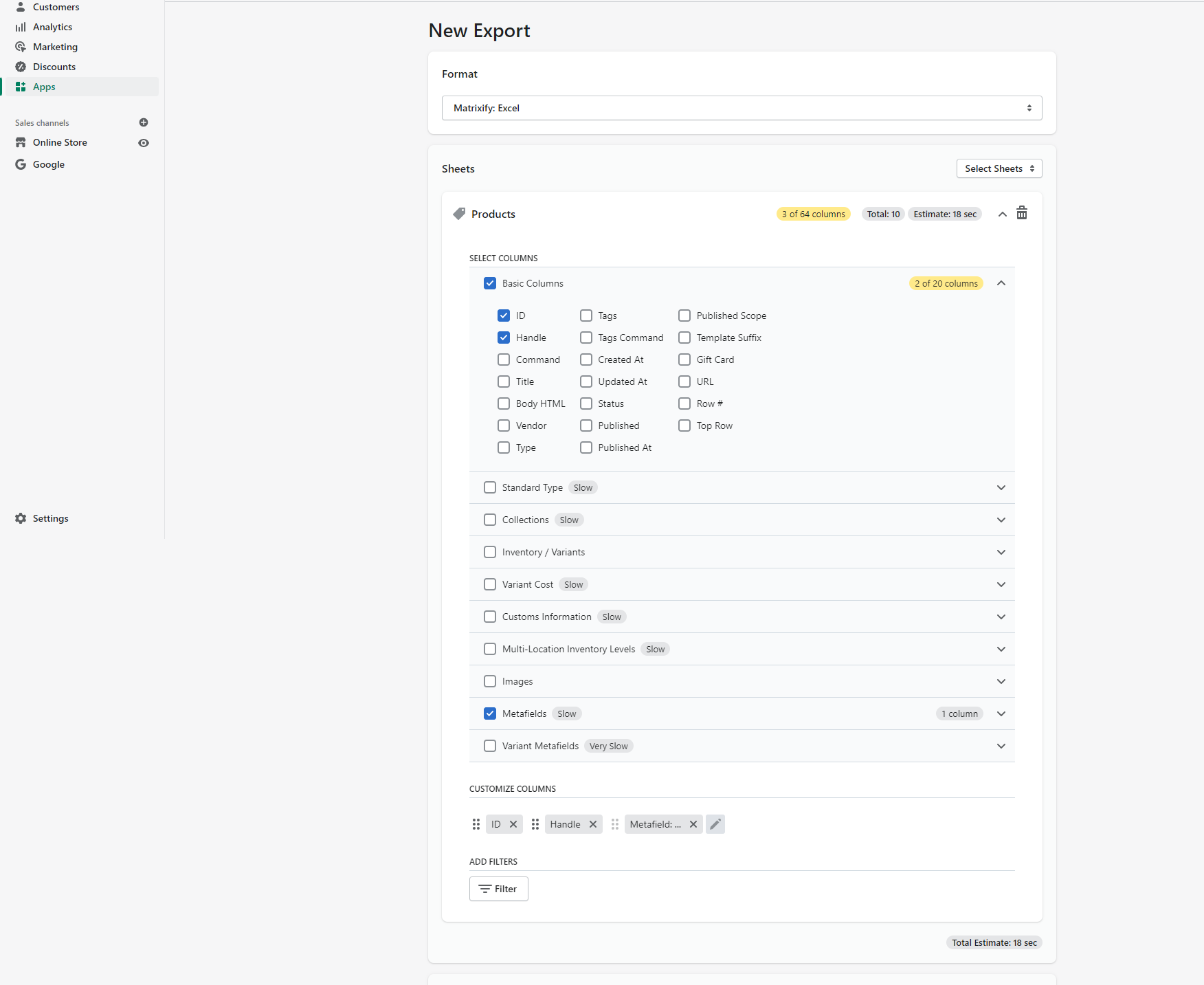 3. Export only Google Shopping Metafields