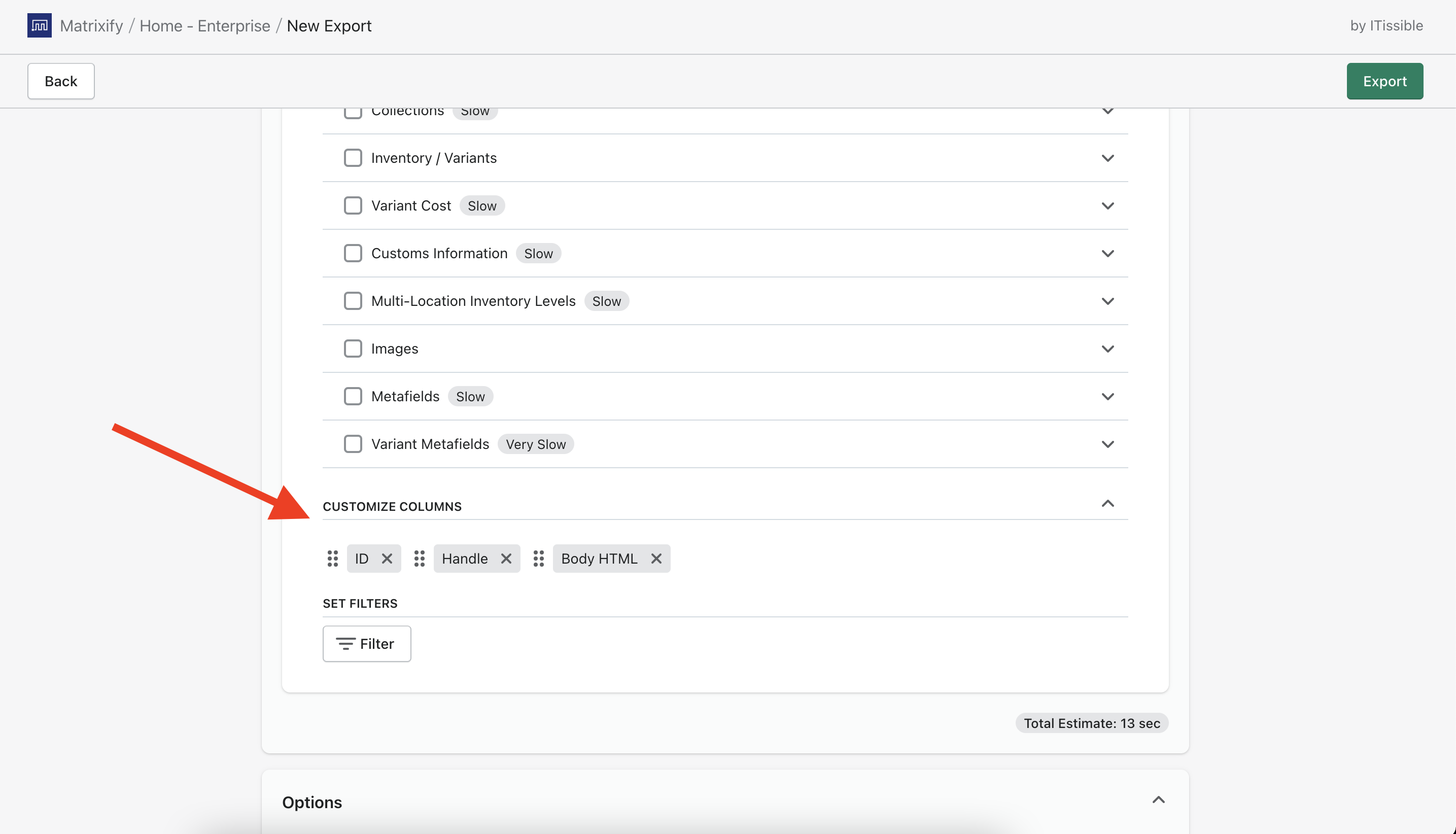 If you do not need to edit the description for all Shopify Products, you can apply filters to the Export and Export only the Products that you need.