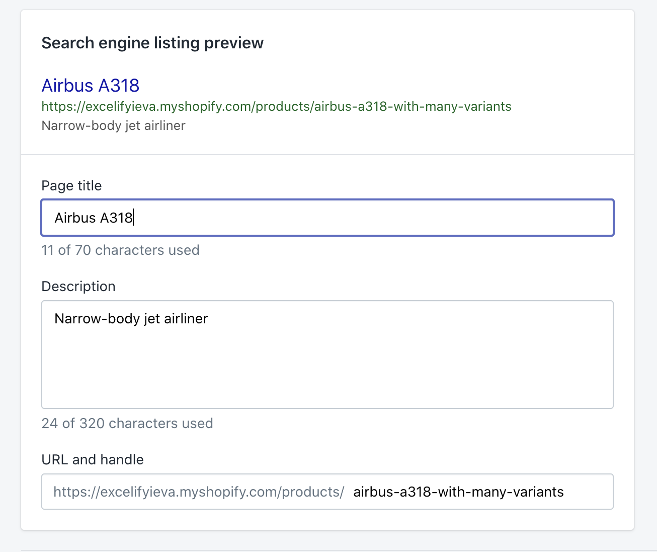 Note – Shopify does not save SEO Title and SEO Description separately if it matches the regular Title or Description.