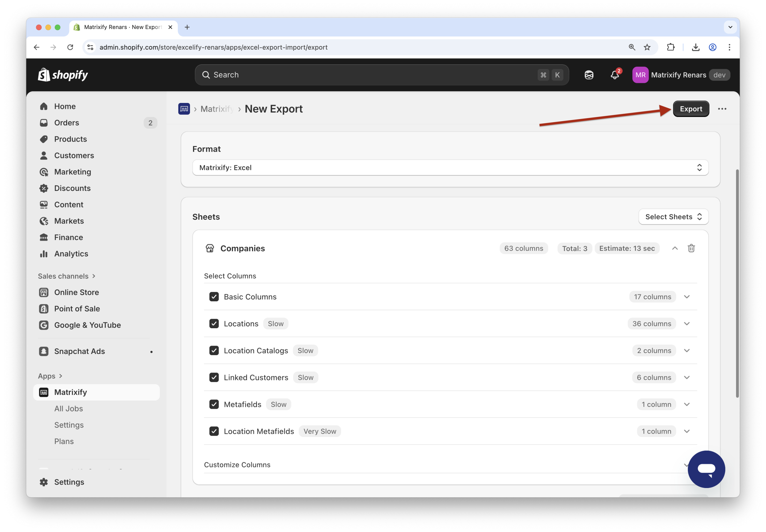 In most cases, it is strongly suggested to export data to Matrixify: Excel
