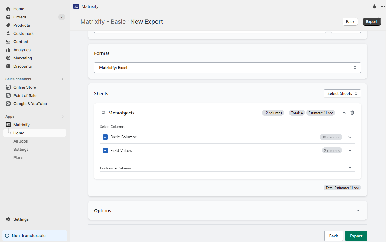 With the Matrixify app, you can easily export your Metaobject entries for analysis, backup, or sharing outside of Shopify.
