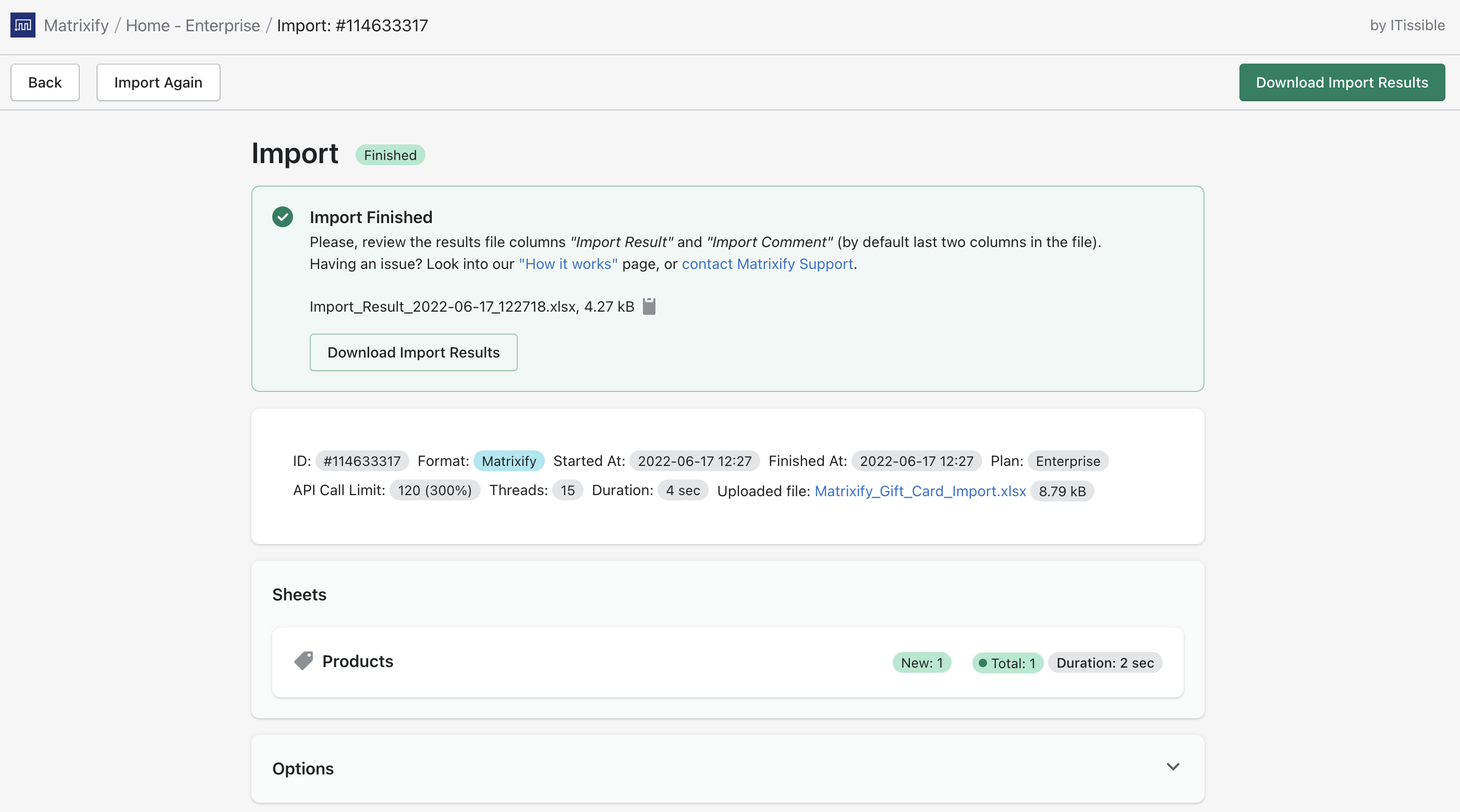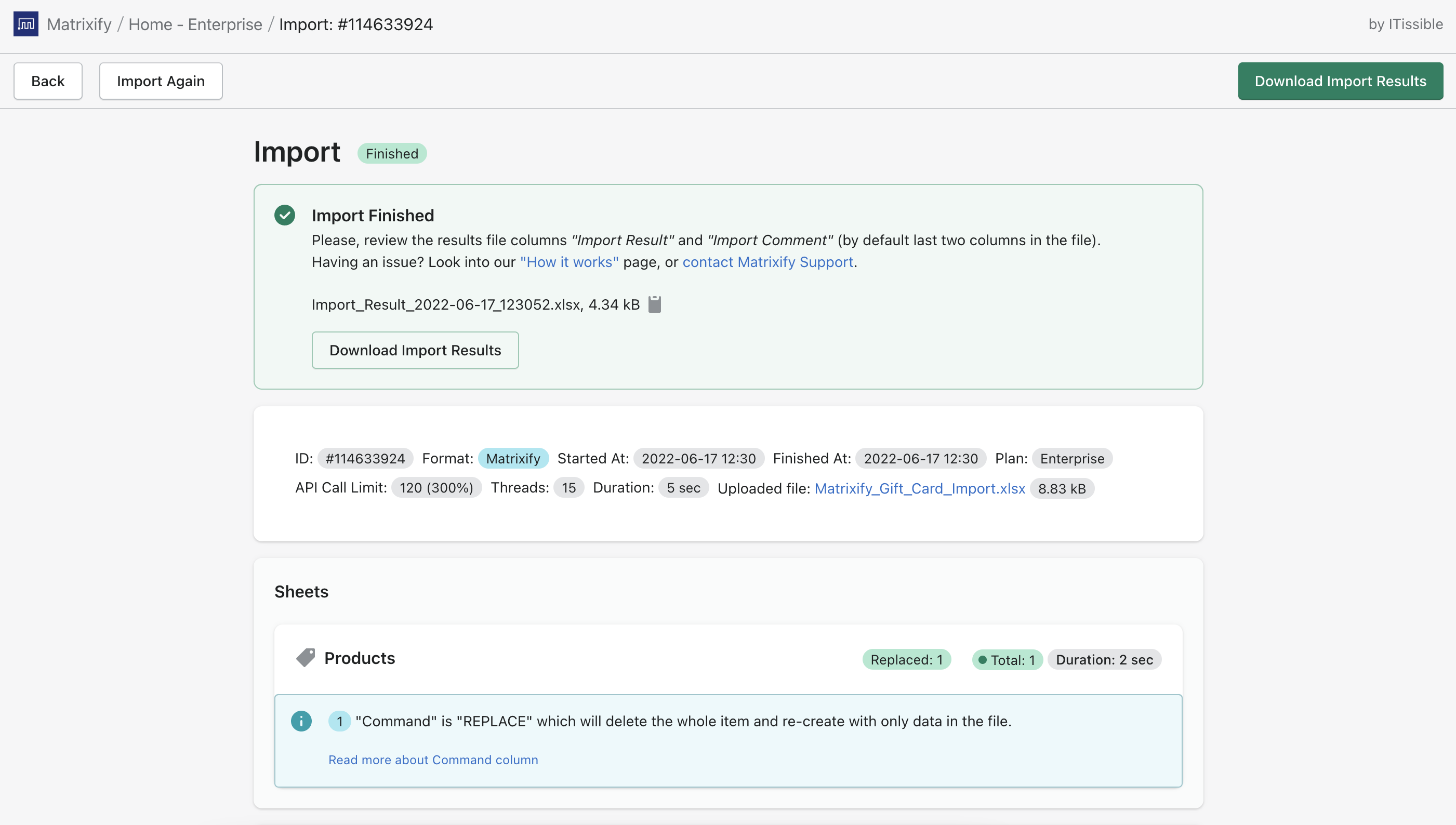 Inspect all details about your import, to read what each detail means when importing, look into Matrixify “How it works” page.