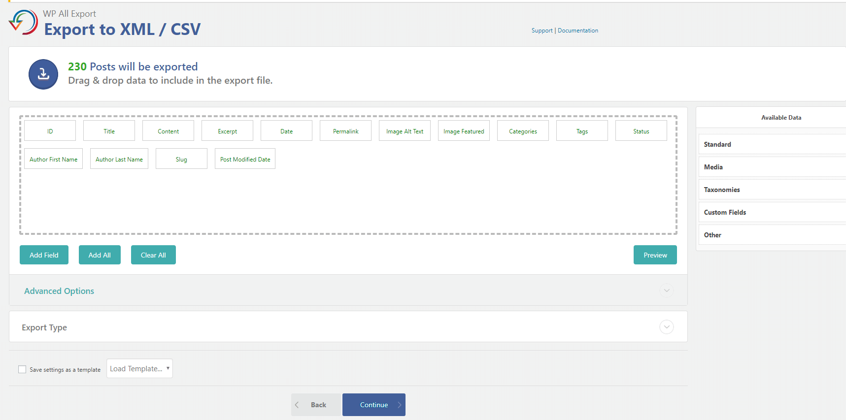 You can also try selecting “Add All” but in some cases, this can break the CSV file data leading to corrupt CSV file – we are suggesting to select specific following fields for your exports.