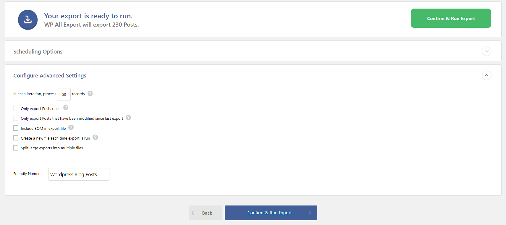 When you have selected Options you need, you can click on the “Confirm & Run Export” button to start the export.