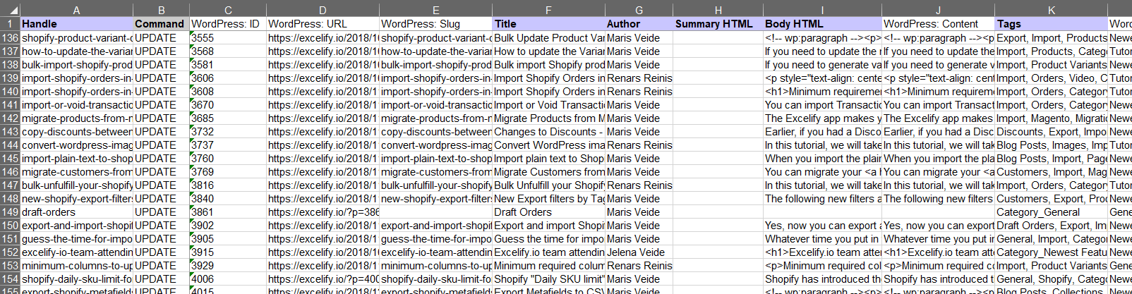 All none-colored columns are there only for the reference if you need to edit/check the data – they will not be actually imported into to Shopify.