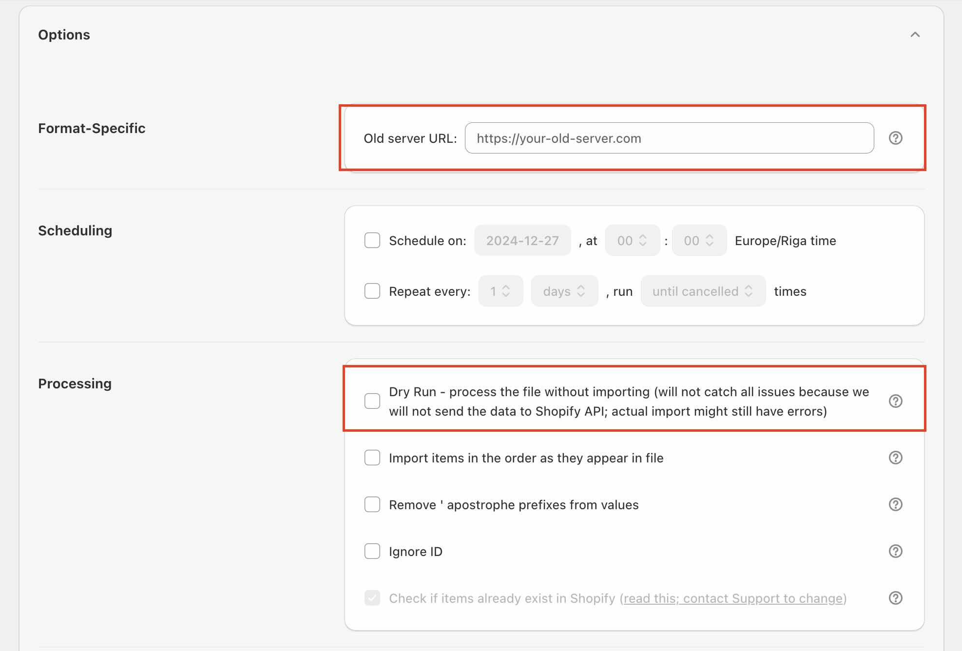 You should see the field “Old server URL” in which you need to fill the website’s domain that you see when logged in to the WordPress admin.