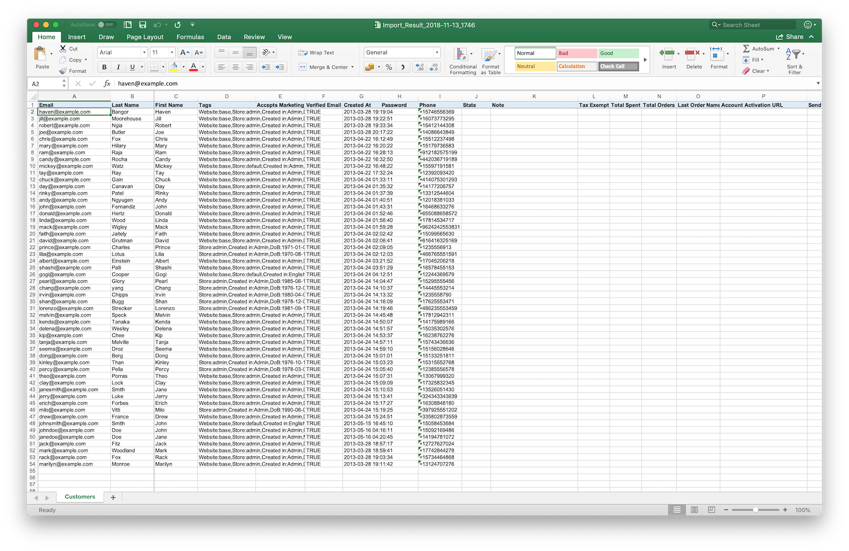 You will have the Excel file like this with one sheet (tab) in it: Customers: