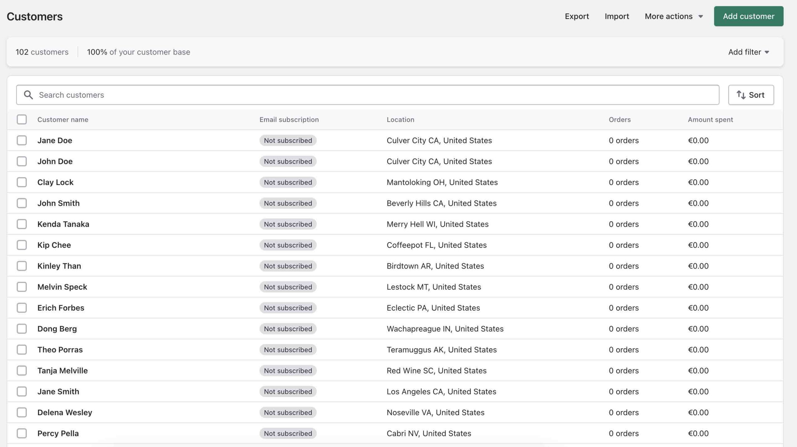 Note the “Tags” column – those contain customer information from your Magento store, that does not have special field in the Shopify, for example, Gender:Male, Magento Group:4, etc. This information can be useful, but you also can delete it if it is not needed.