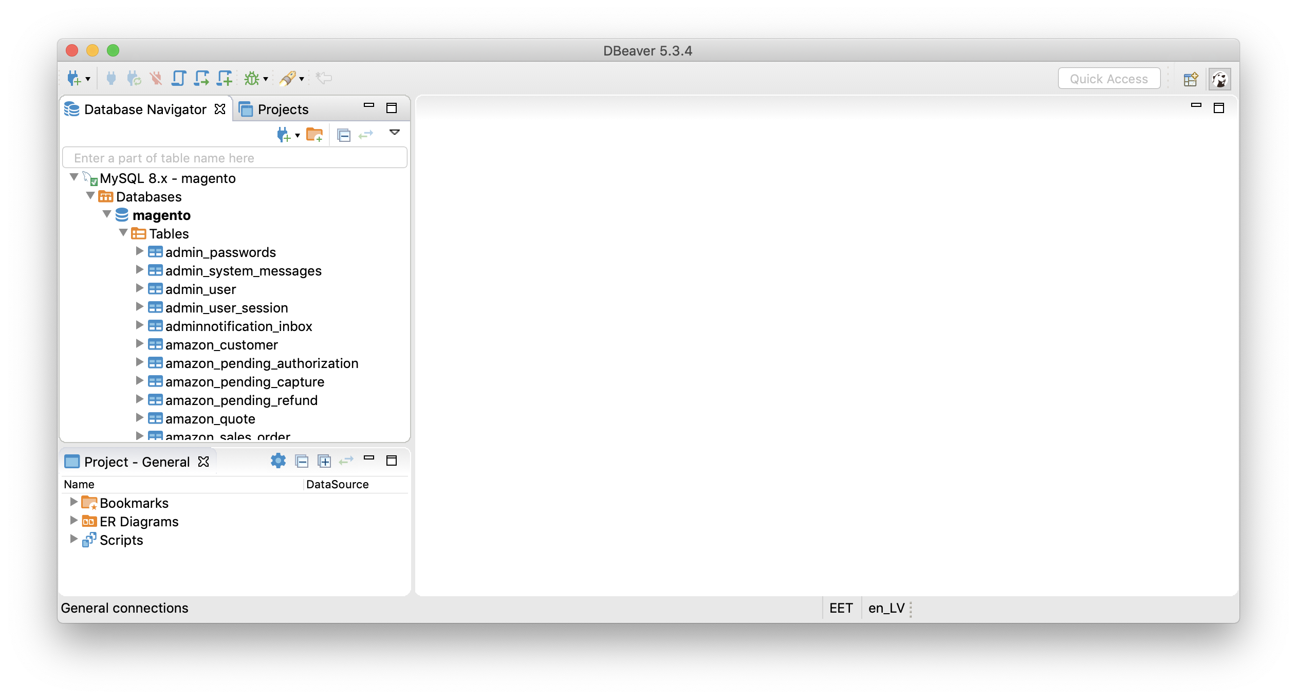 In the “Database Navigator” side panel you should see the “MySQL 8.x – magento” database which you added.