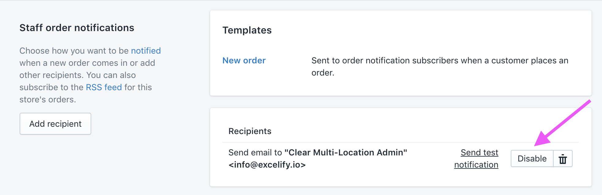 If you don’t want to receive e-mail notifications for creating each Order, go to Admin -> Settings -> Notifications, and disable the “Staff order notifications“.