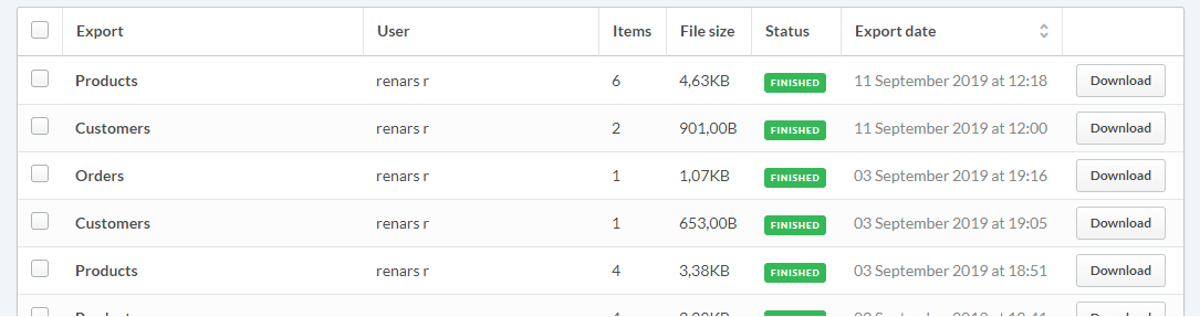 By default, the exported file will have a similar name like this – “products-export-2019-09-11-11-18-42.csv”. You can just add the word “Lightspeed” to the file name, e.g. “lightspeed-products-export-2019-09-11-11-18-42.csv”.