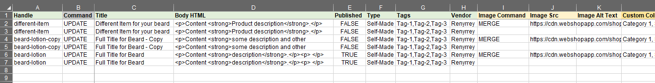 All fields that do not have a specific place in the Shopify will be set as Metafields in the generated file. You can look into Shopify manual on the Metafields and also save our tutorial on how to bulk manage Metafields if you need to edit them later in bulk.