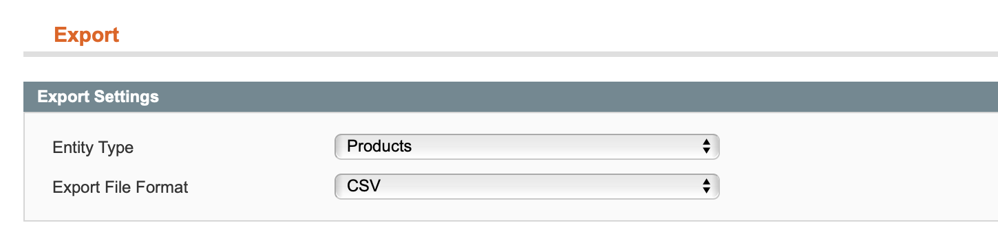 - Export your Products from Magento to CSV file using the standard Magento CSV export.