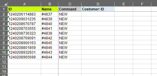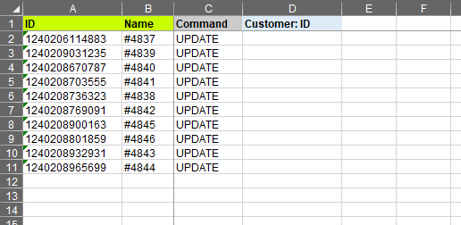 - Delete the values from the “Customer: ID” column.