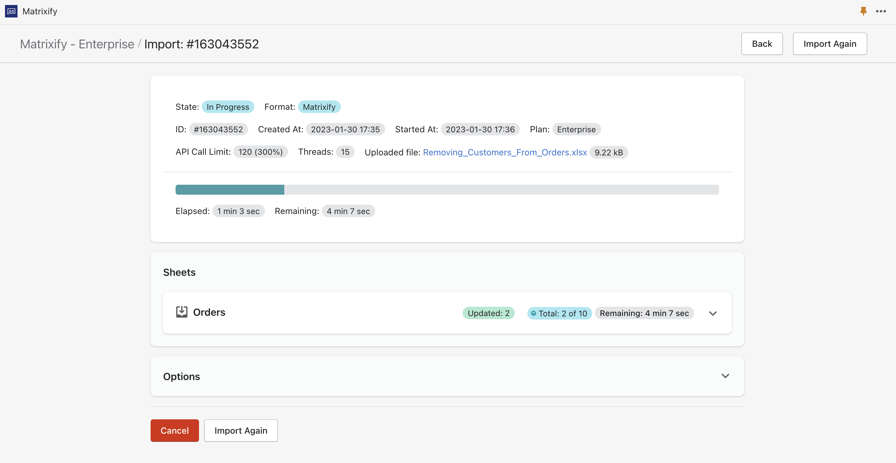 Now you can save the file. Go back to the Matrixify app and import the file in the Import section. The app will analyze the file and count how many Orders you are importing.
