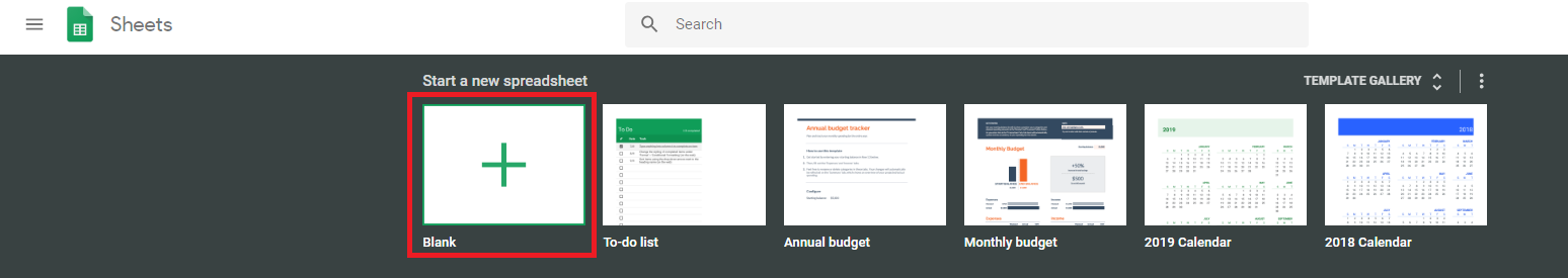 Head over to https://docs.google.com/spreadsheets/ and select ‘Blank’ sheet.