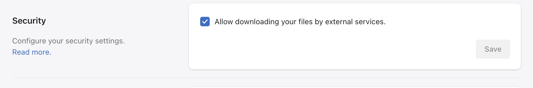Head into Matrixify settings in your store and in section “Security” select the checkbox Allow downloading your files by external services.