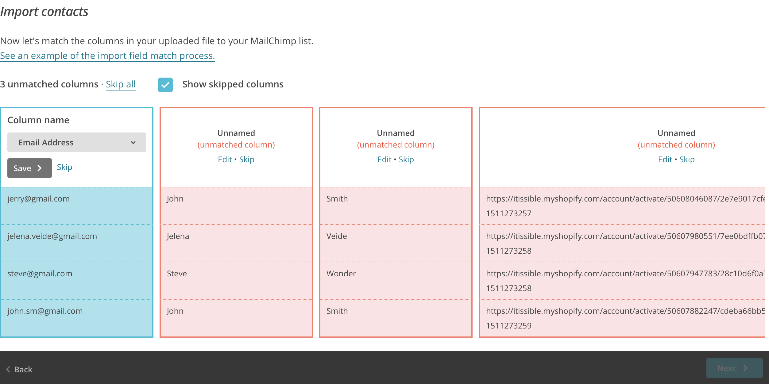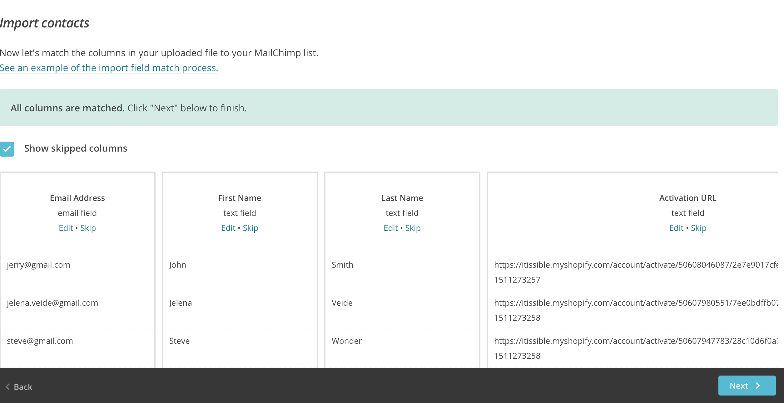 Now we need to help MailChimp to understand what data about customers we want to import.