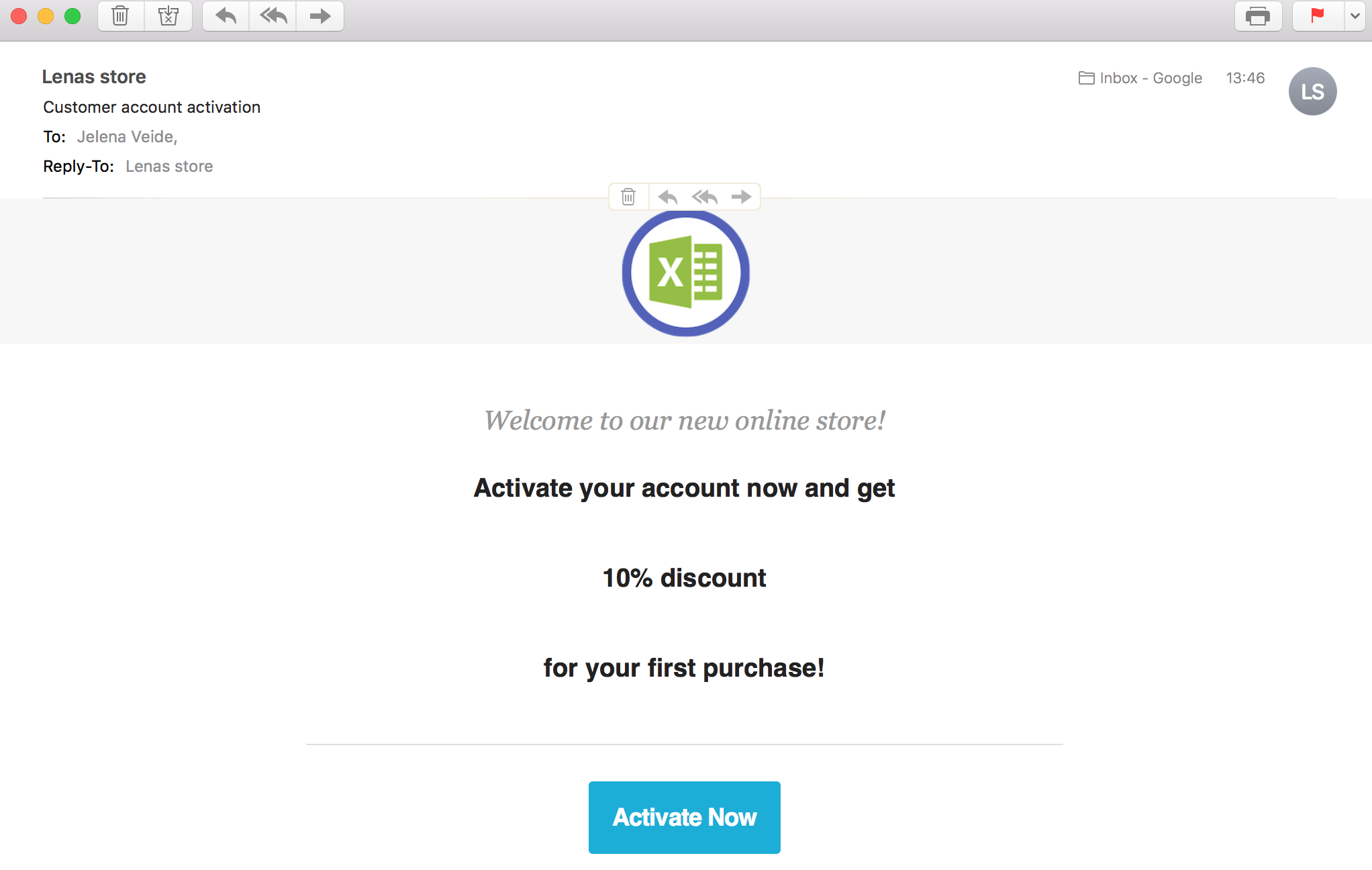 Looks good to me. Activation button will not work here, as this is just a test. But I would like to test, if the button will work in the real email, so I will send this Campaign to my Test Customer list (remember, I have created one?)