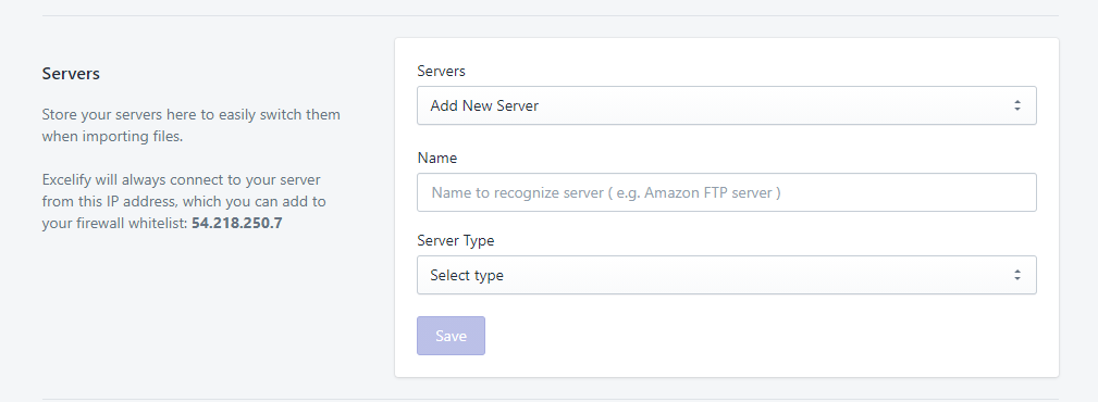 Servers – In this first drop-down you can select and edit existing servers or select “Add New Server” to create and save a new server.