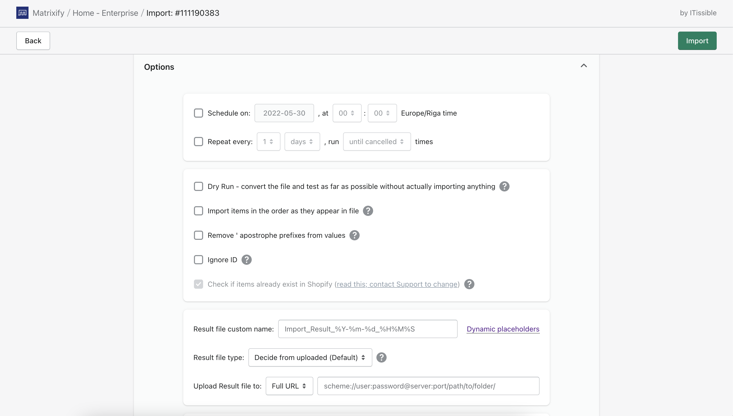 With regular imports, you do not usually need to edit anything within the “Options” as default selections should work fine for usual Product import.