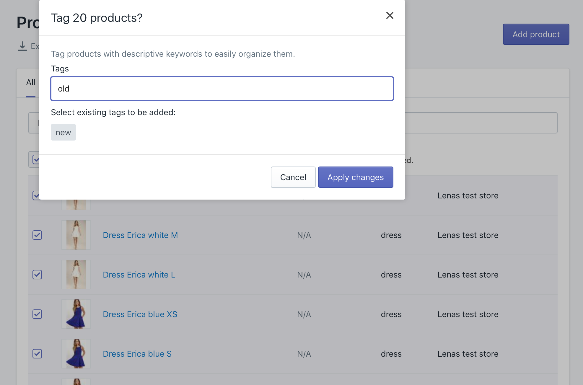 Set a tag for all existing products, so that you can filter them later. We added tag “old” for all existing products before importing the new ones, as we will delete old products after the import: