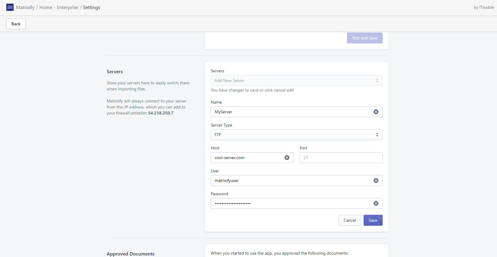 - Set up your server in Matrixify app settings.