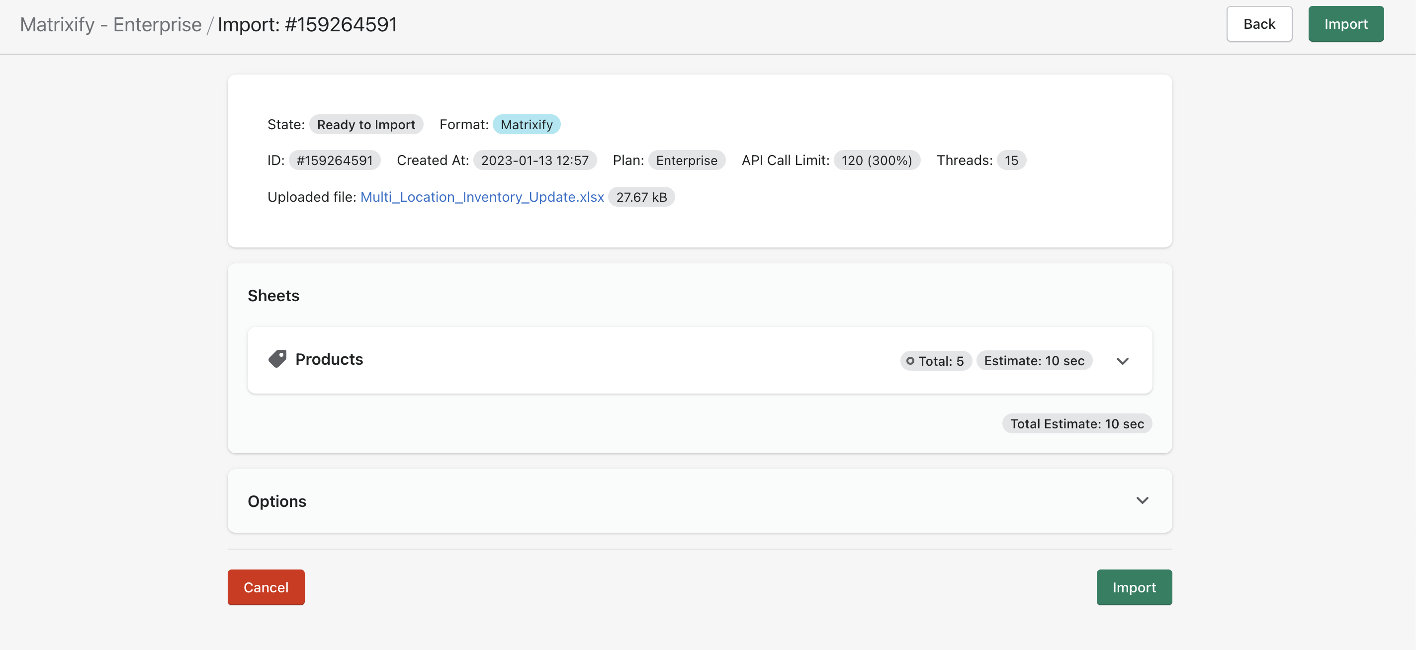 Now you can save the file. Go back to the Matrixify app and import the file in the Import section. The app will analyze the file and count how many Products you are importing.